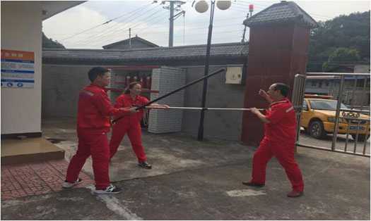 因公司站場多處于城郊結(jié)合部和偏僻地段,治安力量薄弱,易發(fā)生治安或不法事件,為保護(hù)公司財(cái)產(chǎn)及職工人身安全,調(diào)度中心編制反恐防暴預(yù)案,組織站場運(yùn)行人員和長輸管線管理人員在西門站進(jìn)行了反恐防暴演練。演練邀請(qǐng)到轄區(qū)派出所民警向參演職工講解了遇突發(fā)事件如何自保、報(bào)警和制止不法行為,并現(xiàn)場指導(dǎo)如何使用防暴叉、防暴棍、防暴盾牌等防暴器材。