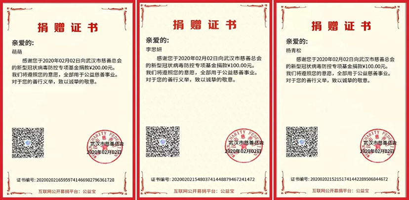 50元、100元、500元……每一張電子捐贈(zèng)證書(shū),都是廣元燃?xì)馊藢?duì)疫區(qū)人民的關(guān)心和支持。以小愛(ài)匯聚大愛(ài),每個(gè)廣元燃?xì)馊硕荚谝宰约旱姆绞截暙I(xiàn)力量,用實(shí)際行動(dòng)支援武漢、共抗疫情,助力打贏這場(chǎng)沒(méi)有硝煙的戰(zhàn)爭(zhēng)!