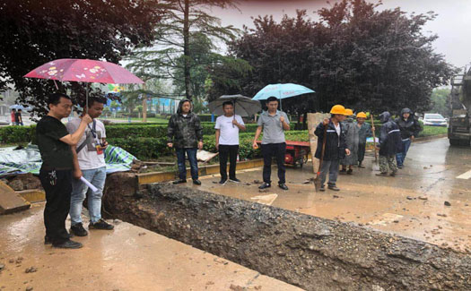 面對惡劣的天氣,廣燃管道公司沒有退縮,公司領導帶頭堅守一線,率領10余名一線施工人員全力以赴,根據地形合理布置施工現(xiàn)場排水系統(tǒng),保證水流暢通不積水;爭分奪秒搶抓進度,積極調配人力、物力,為工程在雨季施工提供有力保障。