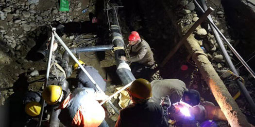 廣燃管道公司負(fù)責(zé)施工的中核四川環(huán)保工程有限責(zé)任公司三堆生活區(qū)供氣分離移交改造工程經(jīng)過(guò)5個(gè)月的緊張施工。于2019年3月4日順利完成碰口作業(yè)。