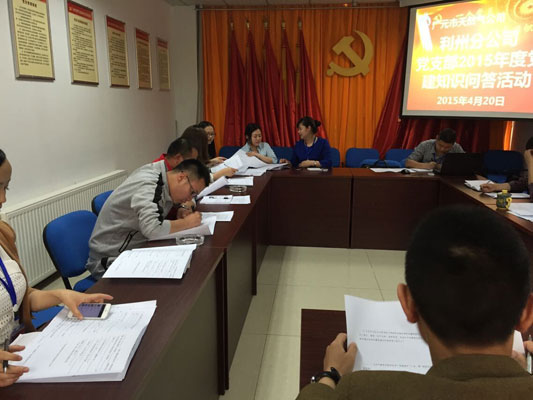 ??? 為認(rèn)真貫徹落實(shí)全市領(lǐng)導(dǎo)班子思想政治建設(shè)暨黨風(fēng)廉政建設(shè)工作會議精神,引導(dǎo)公司黨員干部認(rèn)識新常態(tài)、適應(yīng)新常態(tài)、引領(lǐng)新常態(tài),形成“三嚴(yán)三實(shí)”價(jià)值取向,進(jìn)一步推動公司天然氣產(chǎn)業(yè)發(fā)展,為加快建設(shè)“美麗廣元、幸福家園”凝聚力量。2015年6月20日,利州分公司黨支部組織全體黨員和積極分子開展了黨建知識問答活動。