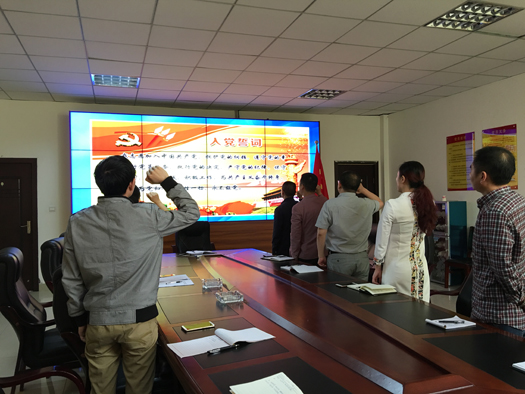 2016年4月29日(星期五)上午11:00,按公司黨委“兩學一做”學習教育工作相關要求,行政部黨支部組織全體黨員,召開了“兩學一做” 學習教育工作動員會。會上,支部書記盧蓉傳達了王志強書記在公司黨委會的主要講話精神,對支部2016年的“兩學一做”工作進行了部署和安排,組織支部黨員一起重溫了入黨誓詞。